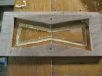 The solution to the above was to reduce the panels closest to the stiles these were the only edges I could get to without smashing the door apart, and to glue the mortice and tenon joints. I could have used Dowels as well but the tenon’s did break and crack as I took them apart, so i decided to introduce dovetail keys, these were let in to a depth of 25mm.