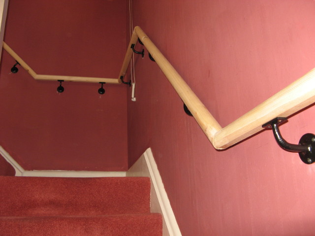This Softwood Mopstick handrail with black brackets fitted to an elderly gentleman’s staircase in Southampton. As I have said in past posts none of us are getting younger. The customer gratefully informed me that having this handrail will enable him to remain in his home of 55years. He was finding it increasingly difficult to manage the stairs. The handrail will be finished off in white by his wife – a mere 91 years old!