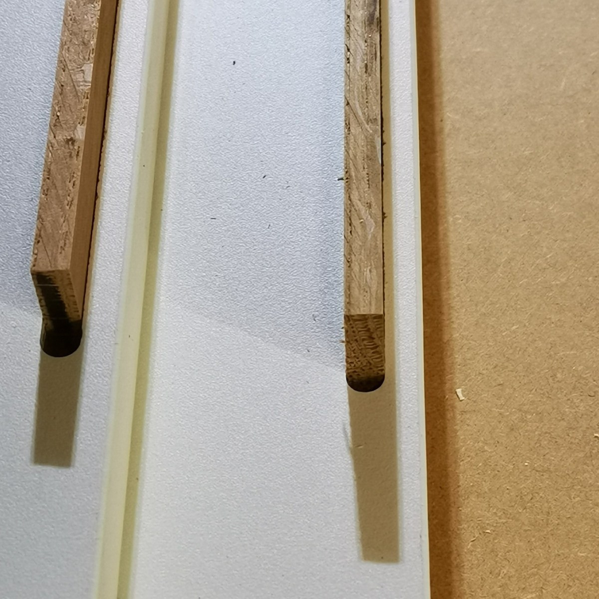 With this in mind I use a method of construction that entails a trench to be machined into the meeting panels and introduce an Oak batten, I choose Oak because of its sheer strength thus avoiding splitting should the piece come under stress. The trench is normally 6.3mm wide and 15mm deep on each panel enabling a 6.3mm x 30mm batten to be glued into place. The images below show the construction of two cupboards that are to be used in an office come handicraft workshop environment. They do not have to be white I can source over 1000 colours with various finishes that can have AirTec Edging.