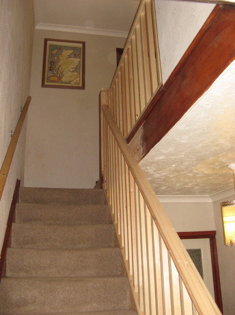 The above is a boarded stair, as opposed to using spindle’s, this was popular in the 1970s and 80s. It is no longer allowed unless the gap between each board or boards and hand/base rail is less than 100mm (4”) . This regulation applies to spindles as well. The regulation prevents the potential for young children and babies getting their head wedged in the gap. There has been truly tragic cases although thankfully few, of very young children accidentally hanging themselves as a result of there being a greater than 100mm opening between spindles or boards.