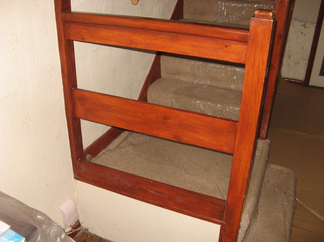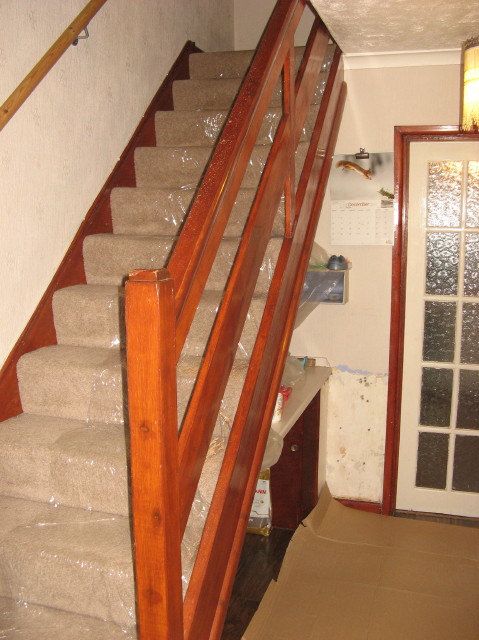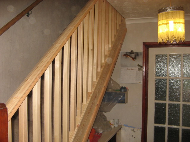 I removed the boards along with the handrail. The Newel posts were left insitu. Replacement stair components were fitted. Not only does this bring the stair case up to date with current regulation the new stair components also lighten up the hall and landing. A painter and decorator was on site at the same time as me so he was then able to sand down the apron and other areas of the stairs that would be inaccessible before the new components were fitted.